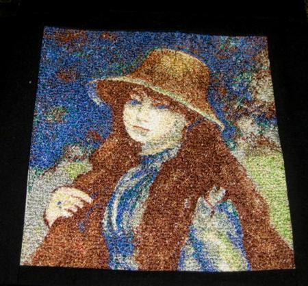 "Here are photos of the duvet cover I made for my son and his fiancee. I used the designs from the fine arts category, Renoir. I stitched these on my Husqvarna Viking Designer I."