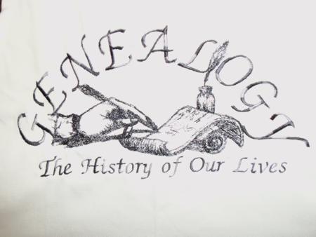 "I have been involved in restoring a very large genealogy collection this year, which has greatly limited my stitching. But in appreciation for their hard work on this project, I stitched a dozen aprons for the volunteers. I combined 2 designs from the Literature Set and added text using my Brother Innovis D. Because I needed to do so many & had much more pressing tasks to attend to, I chose to use variagated thread which meant I didn't have to change thread colors. All seemed pleased with the finished aprons. The 1st & 2nd photos are close ups of the designs & the 3rd shows some of the volunteers wearing their aprons. "