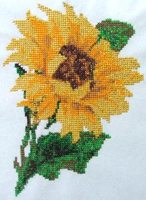 This machine embroidery design is part of our Floral Sunflowers collection. It uses the Cross Stitch technique. It will fit the Large hoop (5" x 7").