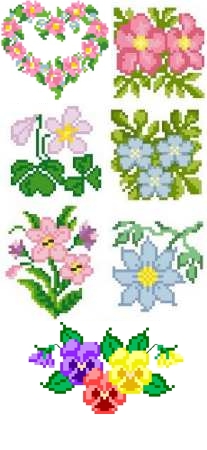This set of machine embroidery designs is part of our Doll Clothes Embellishments and Floral Decorative Motifs collections. It uses the Cross Stitch technique. The designs will fit the Small hoop (4" x 4").