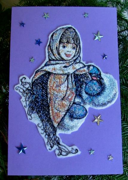 This machine embroidery design is part of our Christmas collection. It uses the Photo Stitch technique. It will fit the Large hoop (5" x 7").