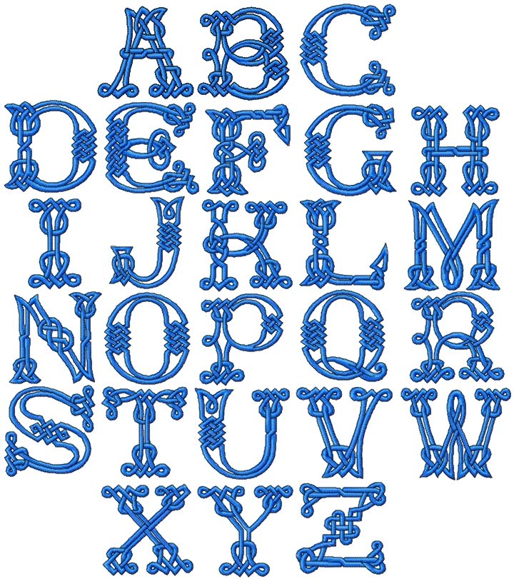 This machine embroidery design is part of our Alphabets and Celtic collections. It uses the Satin Stitch technique. It will fit the Small hoop (4" x 4").