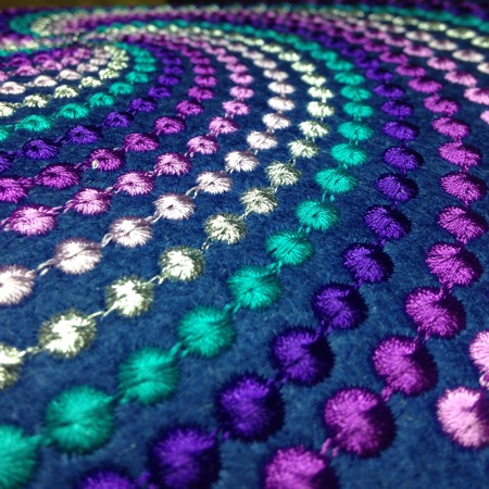 You can embroider the design in any colors. This is a stitch-out of the design in jewel tones.
