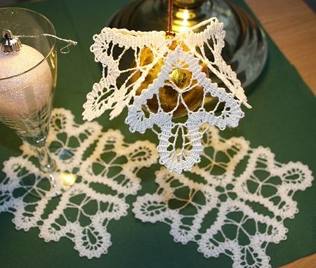 This pattern gives you some creative possibilities. You can use stitch-outs as coasters, Christmas ornaments, or assemble them into table linen of any size.
