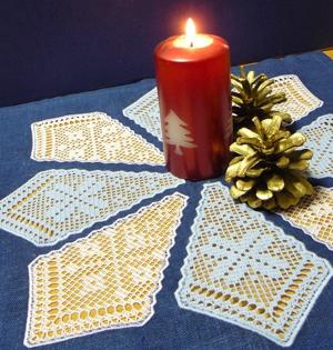 You can read more about this set on the pages Crochet Inserts.This set of machine embroidery designs is part of our Freestanding Crochet Lace collection. It uses the Freestanding Crochet Lace technique. The designs will fit the Large hoop (5" x 7").