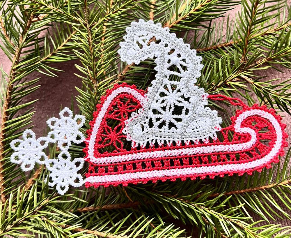 This machine embroidery design is part of our Christmas Freestanding Lace Ornaments collection. It uses the Freestanding Battenberg Lace technique. It will fit the Large hoop (5" x 7").