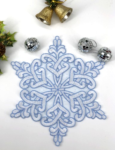This machine embroidery design is part of our Christmas collection. It uses the Satin Stitch technique. It will fit the Commercial hoop (8" x 12").