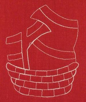 To embroider this design, hoop the fabric with a layer of water soluble mesh. Start embroidering. The machine will embroider the outline of the design and stop.