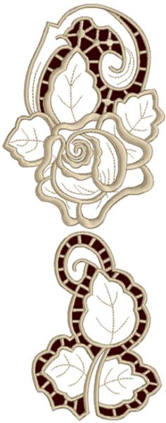 This set of machine embroidery designs is part of our Cutwork Lace Roses collection. It uses the Lace technique. The designs will fit the Large hoop (5" x 7").