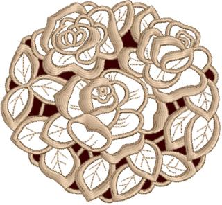 This machine embroidery design is part of our Cutwork Lace Roses collection. It uses the Lace technique. It will fit the Large hoop (5" x 7").