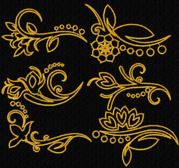 This set of machine embroidery designs is part of our Floral Decorative Motifs collection. It uses the Satin Stitch technique. The designs will fit the Small hoop (4" x 4").