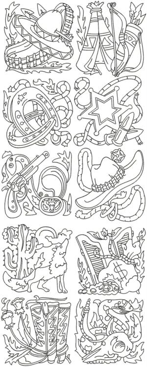 This set of machine embroidery designs is part of our Quilting and Western collections. It uses the Redwork technique. The designs is available for the Large hoop (5" x 7") and Mega hoop (6" x 10").