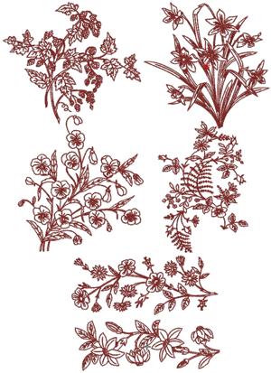 This set of machine embroidery designs is part of our Redwork Flowers collection. It uses the Redwork technique. The designs is available for the Large hoop (5" x 7") and Mega hoop (6" x 10").