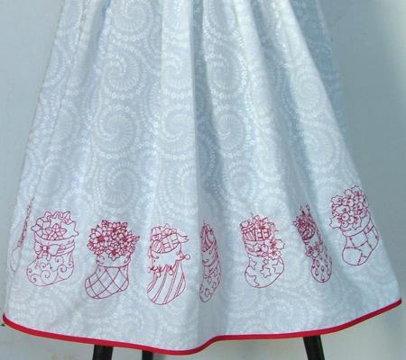 We embroidered the designs for a 4x4 hoop on a Christmas Tea Apron.