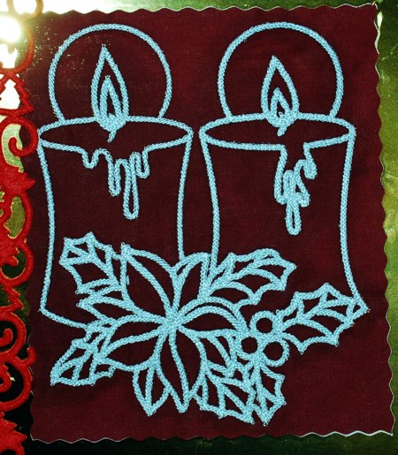 This set of machine embroidery designs is part of our Christmas Redwork collection. It uses the Graphic Technique technique. The designs is available for the Large hoop (5" x 7") and Mega hoop (6" x 10").