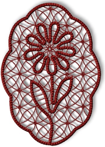 This machine embroidery design is part of our Freestanding Point Lace collection. It uses the Freestanding Point Lace technique. It is available for the Large hoop (5" x 7") and Mega hoop (6" x 10").