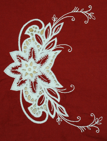 This set of machine embroidery designs is part of our Cutwork Lace Floral collection. It uses the Cutwork Lace technique. The designs is available for the Commercial hoop (8" x 12") and Mega hoop (6" x 10").