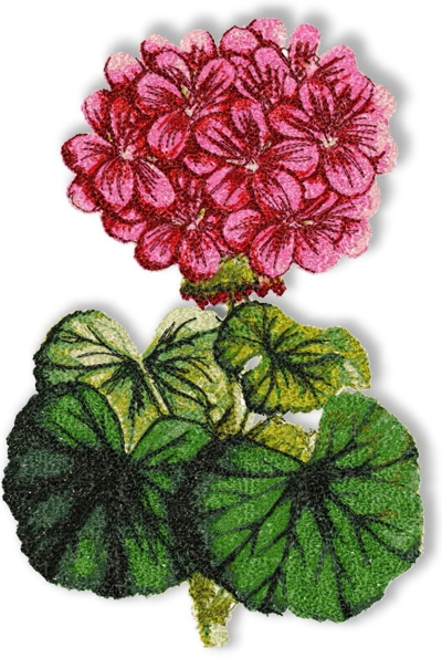 This machine embroidery design is part of our Floral Geranium collection. It uses the Photo Stitch technique. It is available for the Commercial hoop (8" x 12"), Large hoop (5" x 7") and Mega hoop (6" x 10").