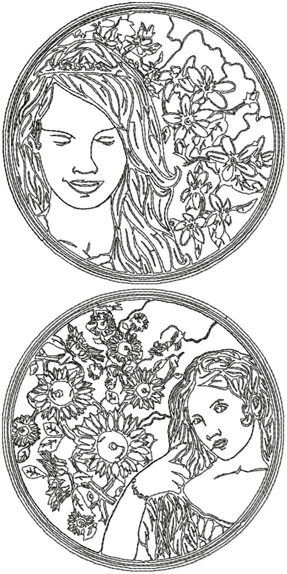 This set of machine embroidery designs is part of our Redwork Ladies collection. It uses the Graphic Technique technique. The designs will fit the Mega hoop (6" x 10").