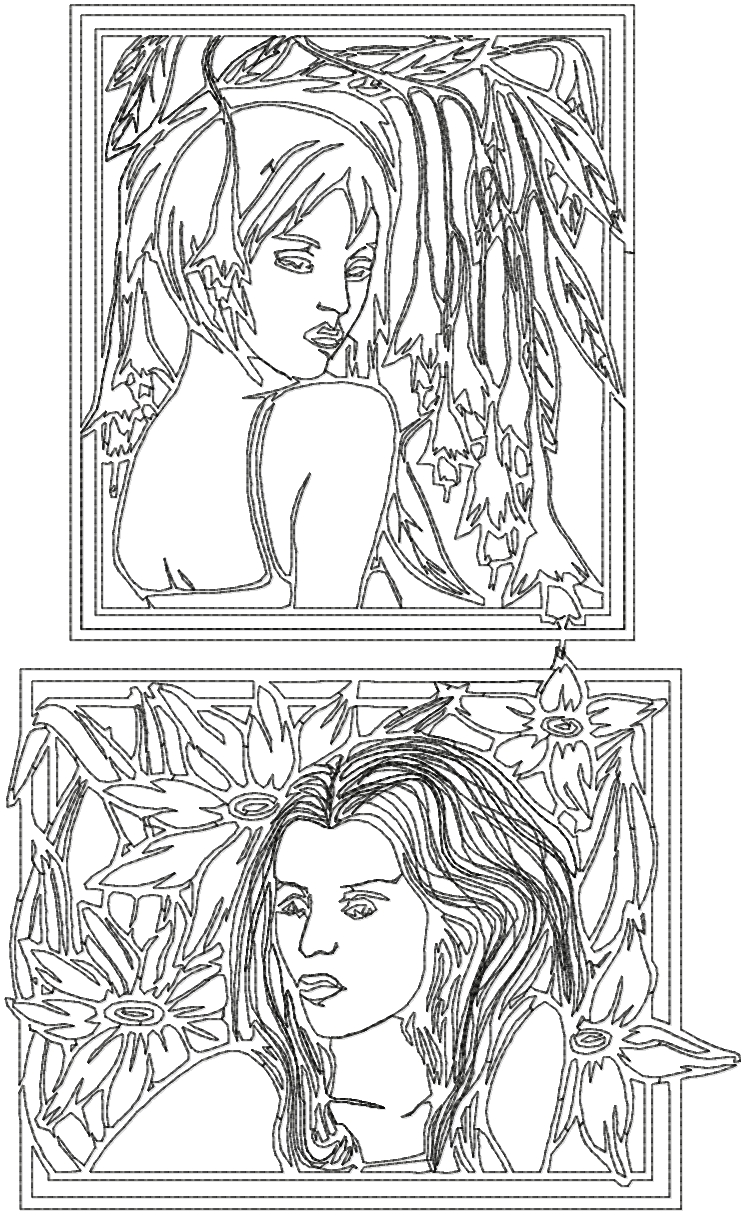 This set of machine embroidery designs is part of our Redwork Ladies collection. It uses the Graphic Technique technique. The designs will fit the Mega hoop (6" x 10").