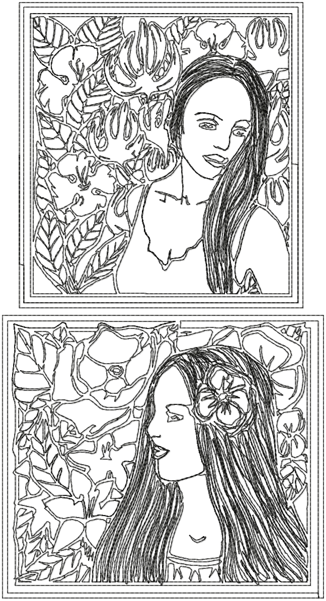 This set of machine embroidery designs is part of our Redwork Ladies collection. It uses the Graphic Technique technique. The designs will fit the Mega hoop (6" x 10").