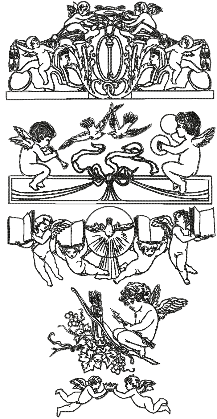 This set of machine embroidery designs is part of our Redwork Angels collection. It uses the Graphic Technique technique. The designs will fit the Large hoop (5" x 7").