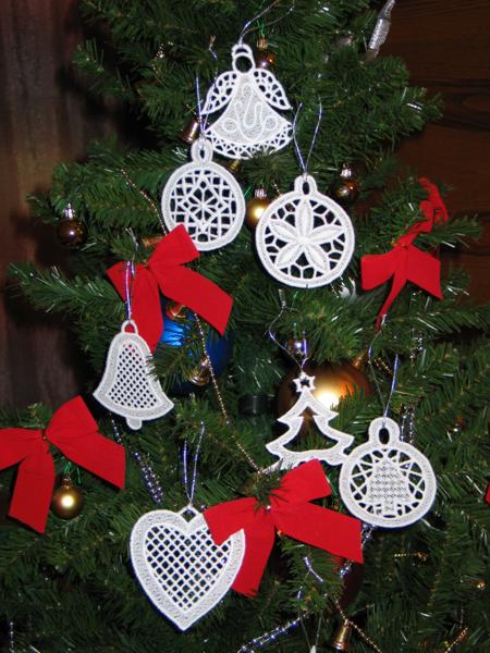 This set of machine embroidery designs is part of our Christmas Freestanding Lace Ornaments collection. It uses the Freestanding Lace technique. The designs will fit the Small hoop (4" x 4").