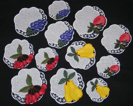 This set of machine embroidery designs is part of our Freestanding Lace Doilies collection. It uses the Freestanding Lace technique. The designs is available for the Large hoop (5" x 7"), Mega hoop (6" x 10") and Small hoop (4" x 4").