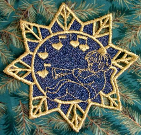 This machine embroidery design is part of our Christmas Freestanding Lace Ornaments collection. It uses the Freestanding Lace technique. It is available for the Large hoop (5" x 7") and Small hoop (4" x 4").