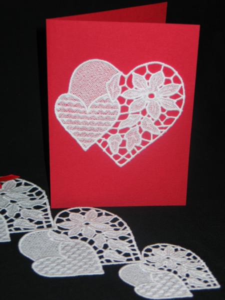 If you glue a stitch-out onto card stock, you'll get a handsome Valentine greeting card like this one.