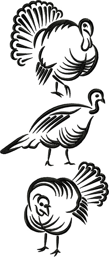 This set of machine embroidery designs is part of our Birds and Thanksgiving collections. It uses the Satin Stitch technique. The designs will fit the Small hoop (4" x 4").