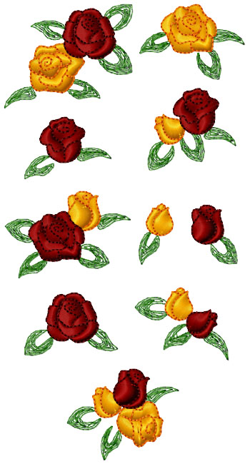 This set of machine embroidery designs is part of our Floral Roses collection. It uses the Satin Stitch technique. The designs will fit the Small hoop (4" x 4").