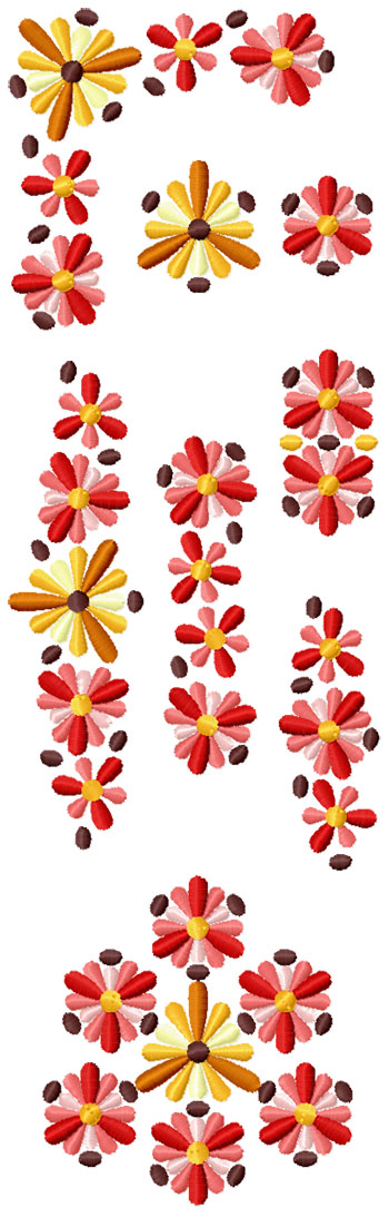 This set of machine embroidery designs is part of our Doll Clothes Embellishments and Floral Decorative Motifs collections. It uses the Satin Stitch technique. The designs will fit the Small hoop (4" x 4").
