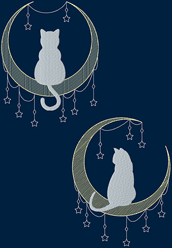 This machine embroidery design is part of our Animals Cats and Celestial collections. It uses the Satin Stitch technique. It will fit the Large hoop (5" x 7").