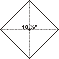 Iron the embroidery and cut out the fabric in the shape of a diamond. To do this, flip the fabric over, mark its center with a pin and draw two lines in the shape of a cross through the center. Each line should be 10 1/2" long. Connect the ends of the cross with lines.