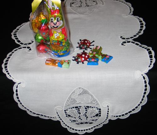 You will need Vilene water soluble stabilizer, embroidery threads and a 19" x 29" piece of linen fabric. The finished size of the table runner is about 16 12/" x 27 1/2" .