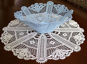 The Antique FSL Crochet Bowl and Doily is a set of three machine embroidery designs. The designs should be embroidered as we recommend in our General Guidelines and Step-by-Step Guide to Embroidering our Crochet-Style FSL designs.