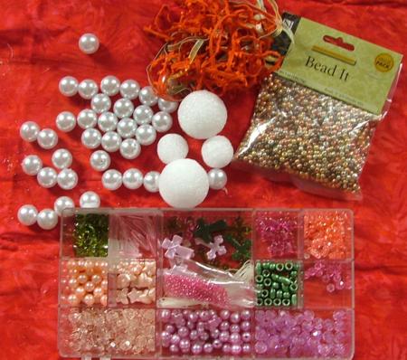 Besides embroidery threads and stabilizer, you will also need universal glue, a tapestry needle, regular sewing needles, styrofoam balls 1 1/2" in diameter, all kinds of beads, yarns, thin golden metallic cord, tassels - everything you'd like to use to embellish the ornaments.