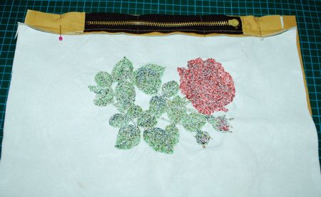 In the same way sew the second embroidered piece to the other side of the zipper.