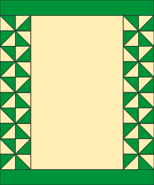 Sew the green 2" x 15" strips to the upper and lower sides of the quilt.
