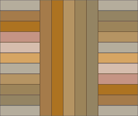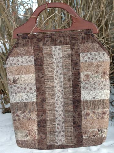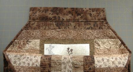 For the back panel, out of brown scraps cut 22 strips measuring 2" x 6", and 5 strips measuring 2" x 17". Sew the 5 longer strips together into a central part.