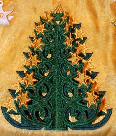 Note: If you want a tree without stars you can stop at this point. Take the stitch-out from the hoop and wash away the stabilizer.
