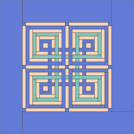 | Sew strip #18 to the left edge of the block, #19 to the bottom, #20 to the right edge and #21 to the upper edge. |