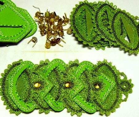 Embroider part 1 using cotton thread in the needle and in the bobbin. To get the bracelet 8" long embroider the part 13 times.