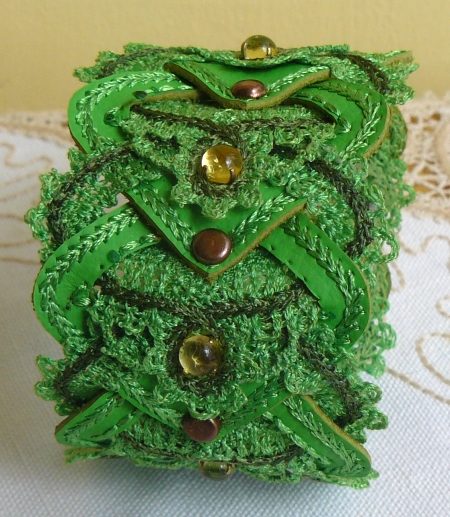 For this bracelet you need to embroider both lace and leather parts. To get a bracelet 8" long embroider the lace 8 times and leather part 7 times.