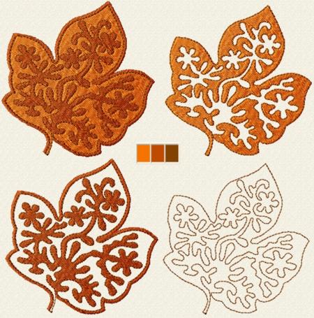 There are 3 designs in the Autumn Leaf Set in the satin-stitch technique: