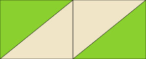 | Sew the left green triangle to the right cream triangle, and the left cream triangle to the right green triangle. You'll get 2 rectangles: |