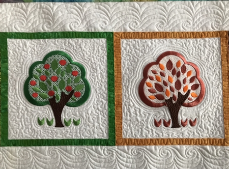 For this tablerunner, we used designs from the Colors of the Seasons Set. The finished size of the quilt is about 14" x 67".