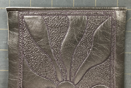 Hoop faux leather stabilized with craft felt and embroider 2 panels.