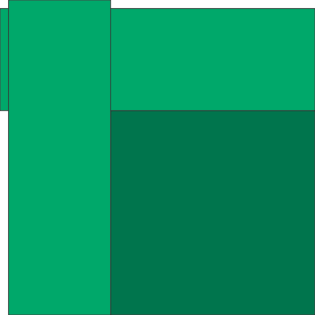 Attach the last pair of strips in the same way. One end of each strip should be positioned 6 1/2" from the corner of the lighter green strips.